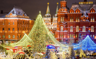 - Красную площадь: здесь вы сможете увидеть знаменитую ёлку и гулять по рождественской ярмарке.